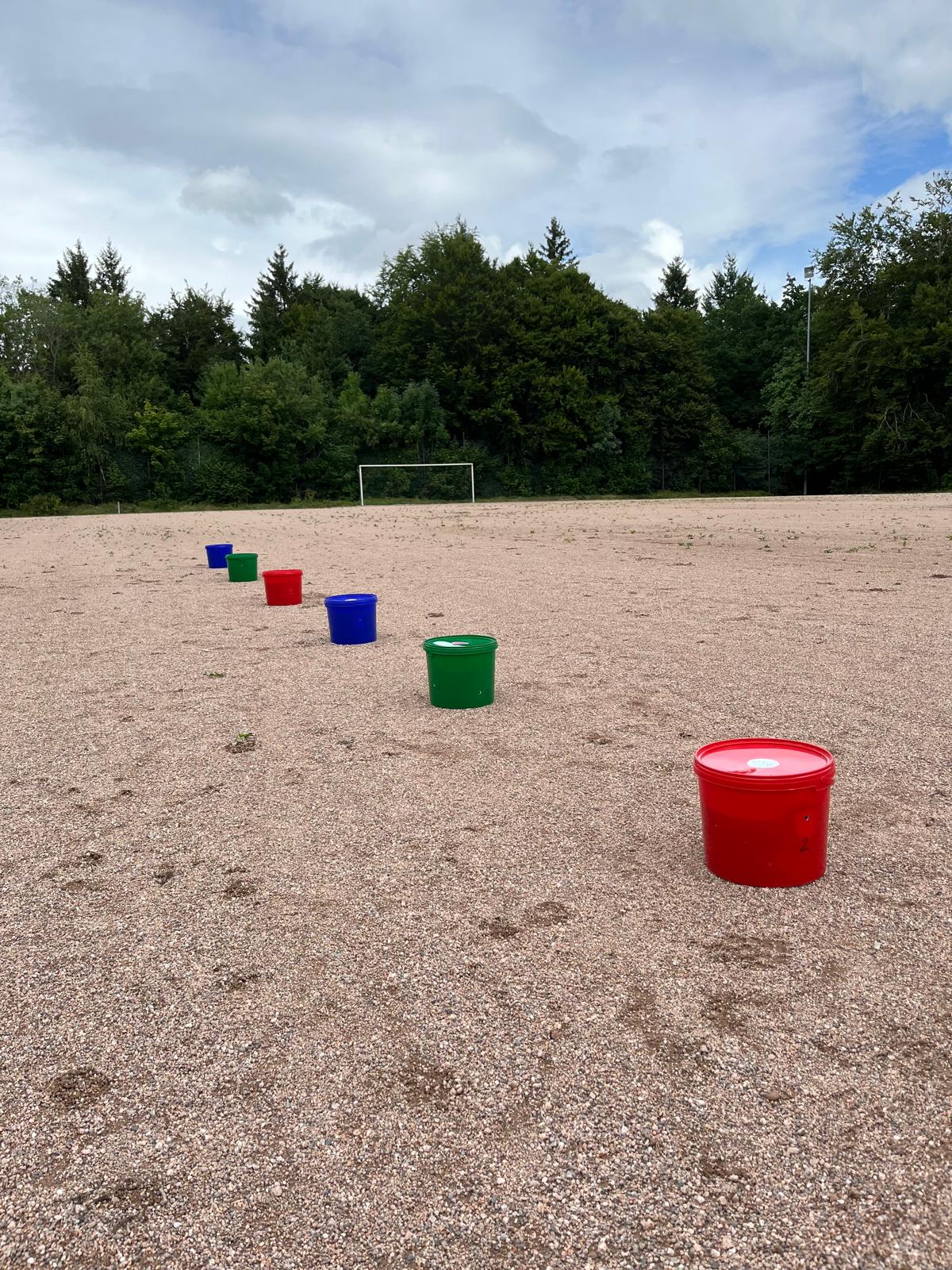 Behältnisstrecke: Jeder Eimer hat 3 Kammern, somit gibt es 18 Versteckmöglichkeiten. Aus einer Kammer (Glas) tritt der gesuchte Geruch aus einem 8mm großen Loch aus.