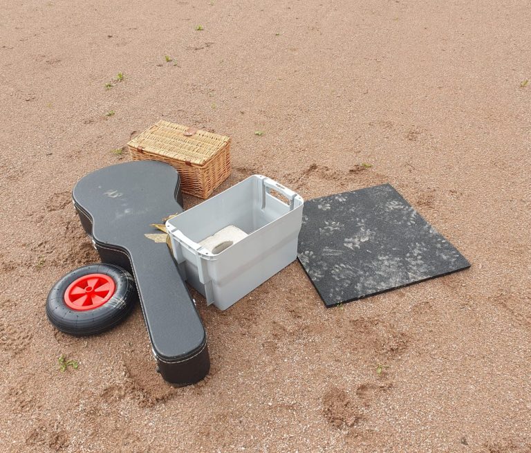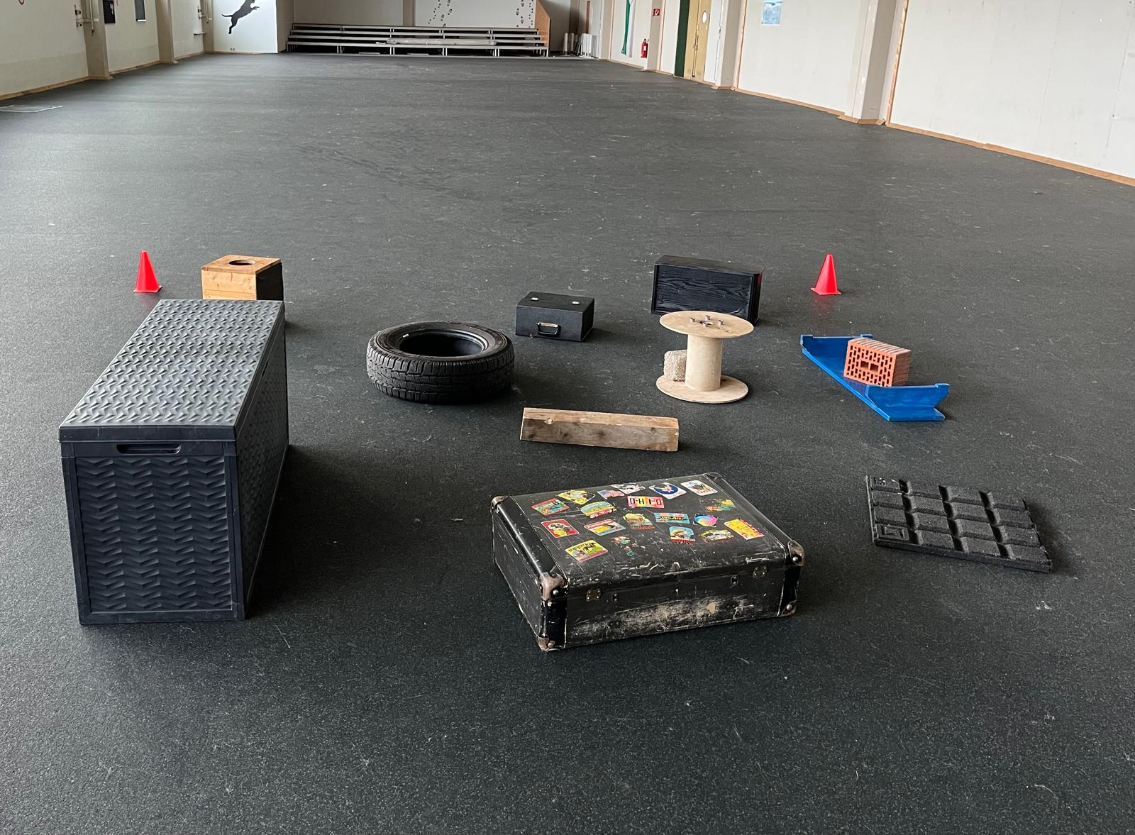 Trümmerfeld LK1: Auf einer Fläche von 4x4 m werden etwa 12 Trümmerteile lose verbaut. Die Fläche kann beispielsweise durch Pylonen oder Absperrband markiert sein.
